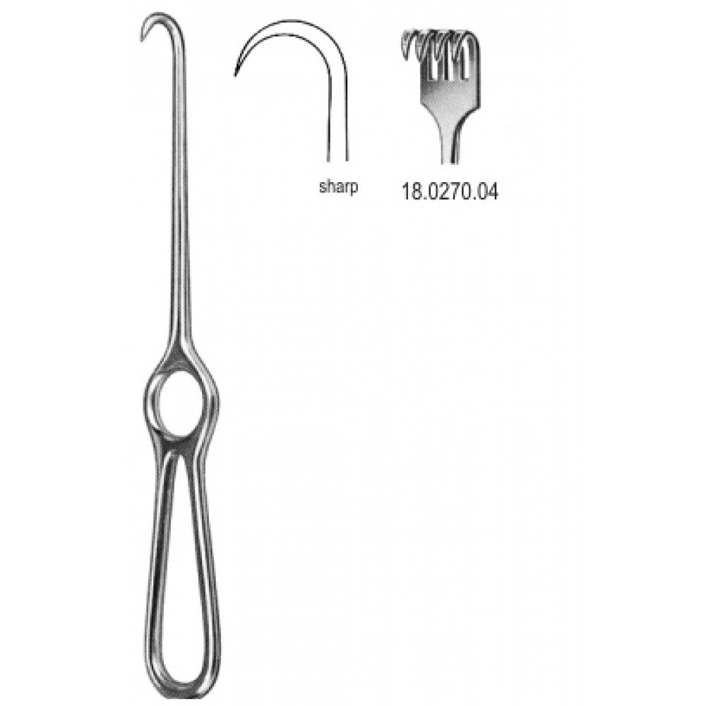 Volkmann Bone Hook Retractor blunt 1.prong 21.5cm